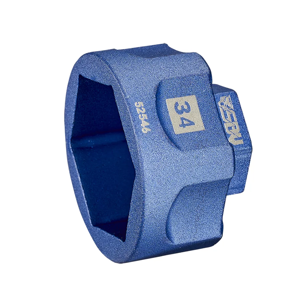 Lightweight 34mm 3/8″ Dr. aluminum socket with a 6-point low-profile design for a precise fit. External HEX 24mm allows for additional torque using a 24mm socket or wrench. Max torque: 210Nm. Only 58g (0.128 lb).