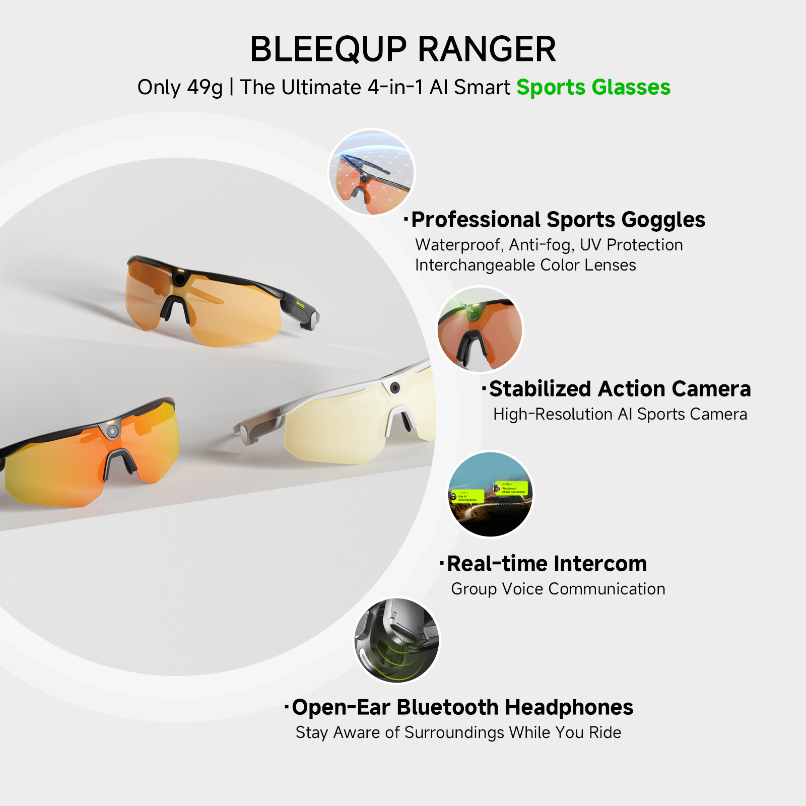 BleeqUp Ranger AI Sports Camera Glasses feature an AI-powered action camera, integrated mics & speakers, pro-grade sports protection, and a lightweight, comfortable design for hands-free POV capture on every ride and outdoor adventure.