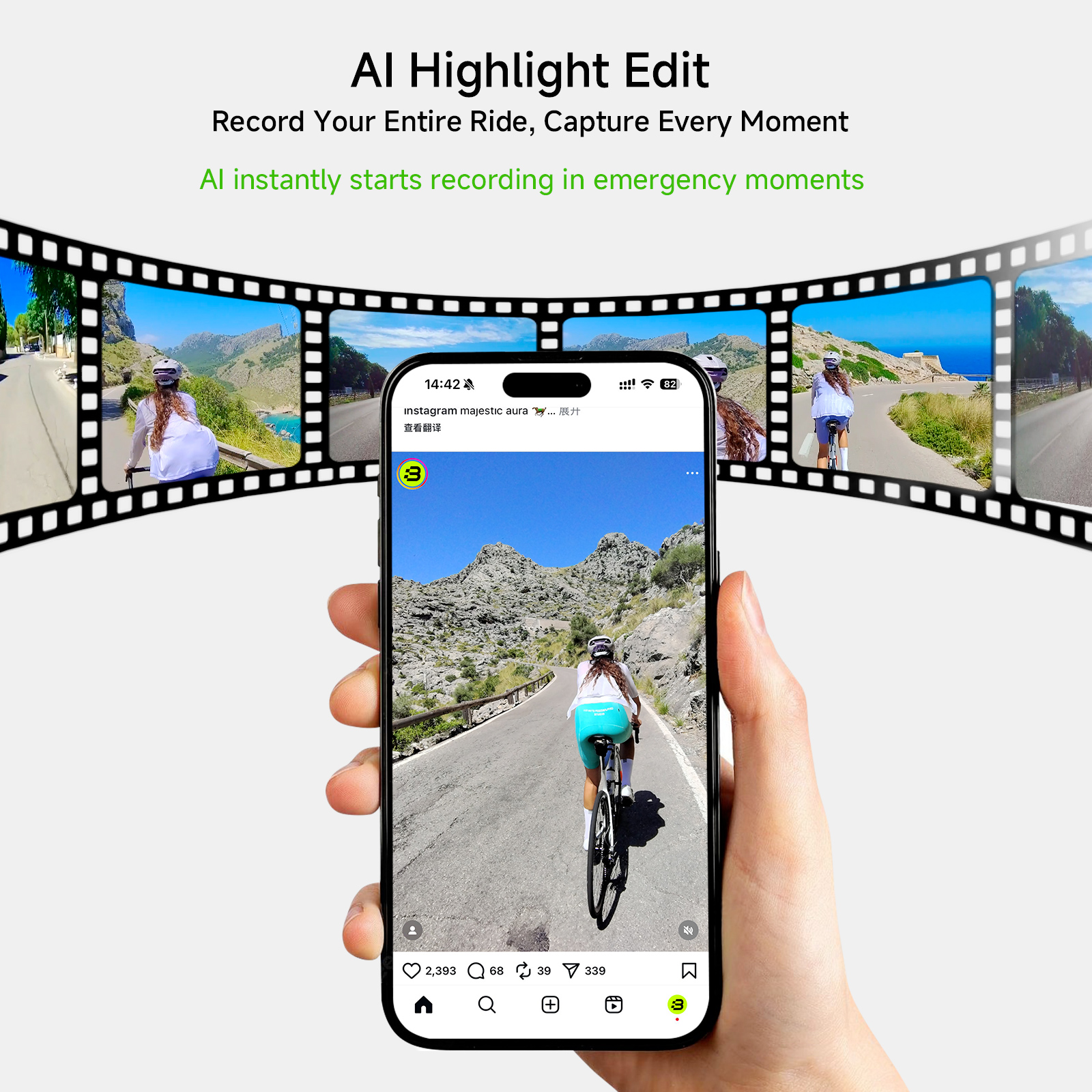 Capture your world in 1080p video and 4K photos from your POV, powered by EIS stabilization and AI Highlight Moment Detection.