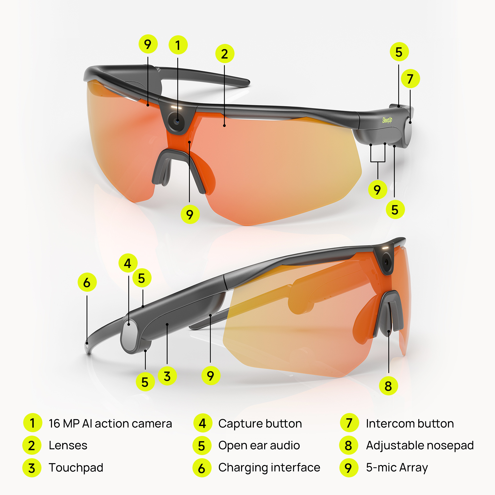 Ranger is designed for sports safety, integrating camera, audio, and communication into one wearable system—so you never need to pull out your phone and risk distraction during movement.