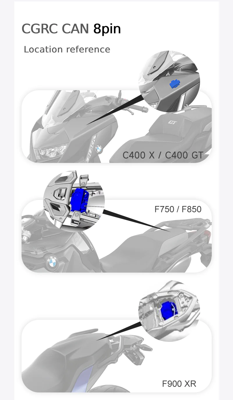 It’s worth noting that some BMW owners may have chosen not to install certain modules during the purchase. Therefore, before buying the CGRC-CAN, we recommend carefully checking the module locations on your motorcycle.