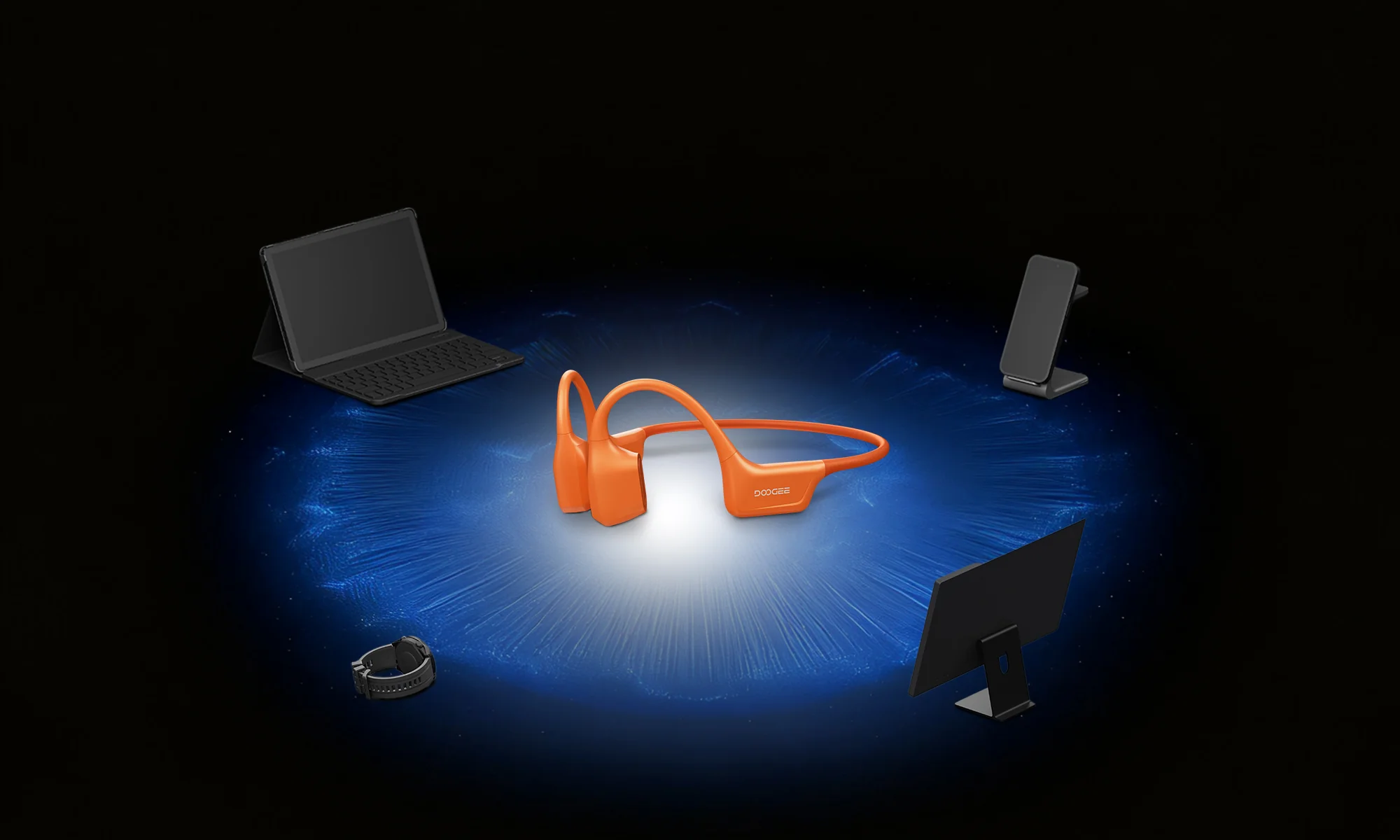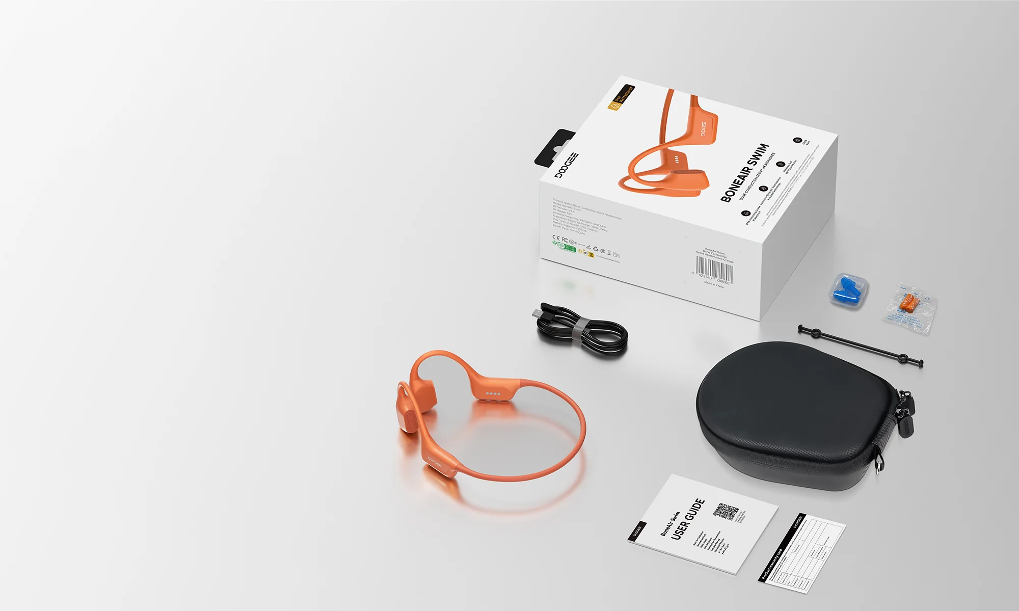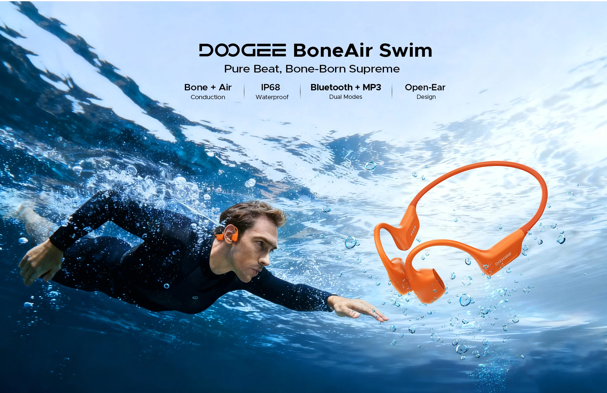 Experience true freedom with the DOOGEE BoneAir Swim IP68 waterproof headphones. Built with hybrid bone and air conduction technology, they deliver immersive sound both in and out of the water. Featuring Bluetooth + MP3 dual modes, open-ear design, and up to 8 hours of battery life, they are the perfect choice for swimming, workouts, and all-day use.