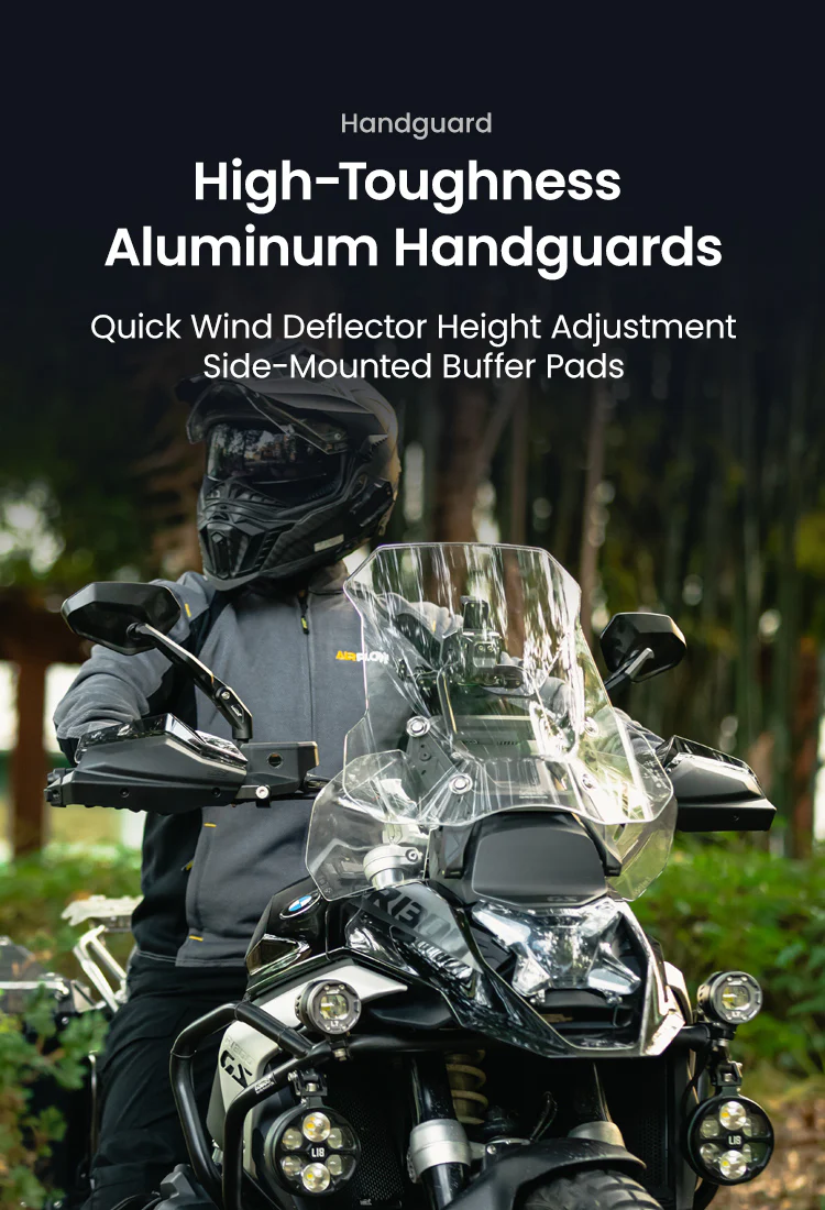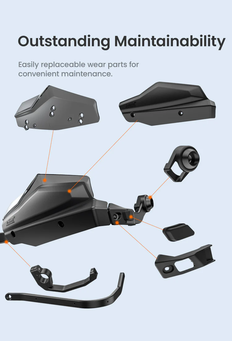 Designed for adventure, the high-toughness aluminum hand-guards provide exceptional protection against flying debris, sudden impacts, and harsh terrain. Whether you’re tackling rugged mountain trails or cruising on gravel roads, they ensure your safety and confidence on every ride. - Lightweight Yet Durable for Reliable Performance