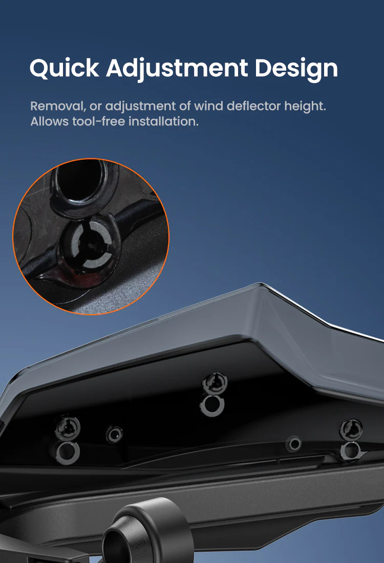 Featuring a secure dual-point mounting system, these hand guards remain firmly in place even on bumpy trails or uneven surfaces. Ride confidently, knowing your equipment is built to handle rough terrain without shifting or loosening. - Adjustable Wind Deflectors for All-Weather Comfort