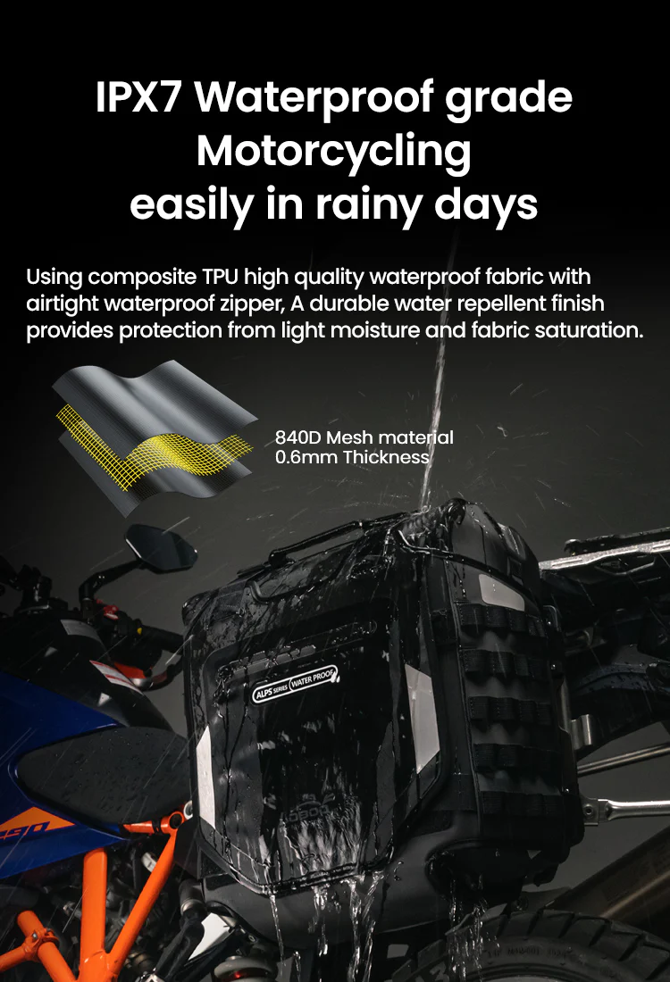Alps Inflatable Motorcycle Side Bags – Waterproof TPU with 300KG Impact Protection, Quick Access, MOLLE System, IPX7 Rated (Pair)