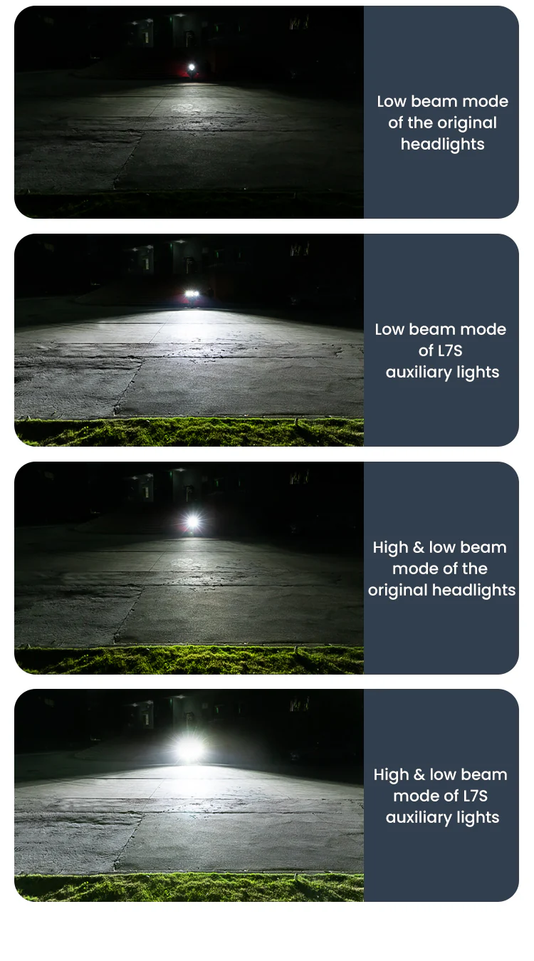 - Intelligent temperature control protection: Automatic downshifting and cooling to avoid damage caused by high temperature and overheating, safer use, and extended service life of auxiliary lights.