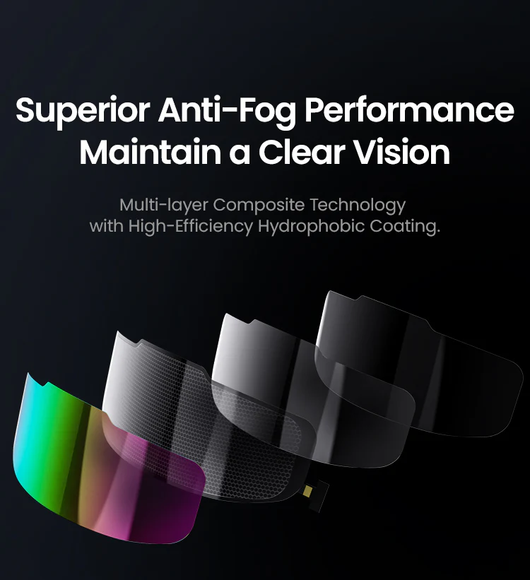 Multi-layer composite lens technology with hydrophobic coating delivers excellent anti-fog performance and scratch resistance—even in rainy or humid conditions. Keeps your field of vision clear and reduces lens maintenance over time. - 【Built for Adventure – Safe, Stylish, and Smart】