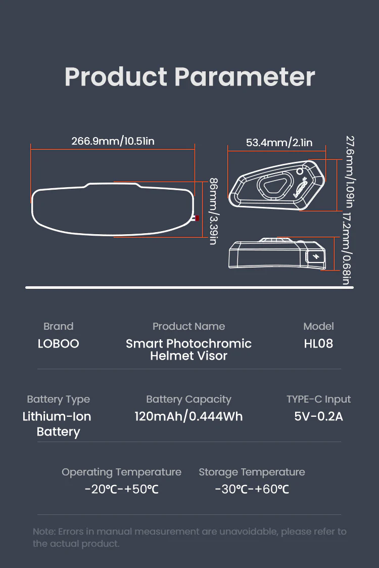 Say goodbye to 3–5 seconds of black-out delay with traditional Electrochromic visors. The HL08 features an advanced light-sensing module that triggers tint adjustment in just 0.01 seconds, helping you adapt instantly when entering tunnels, riding through shaded areas, or facing sudden high-beam glare at night. - 【Dual Mode Smart Control – Auto or Manual】