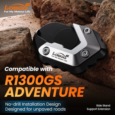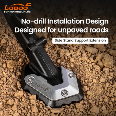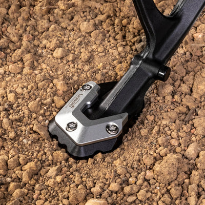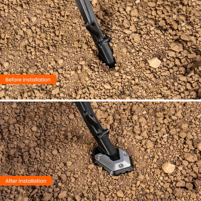 Enlarges the side stand footprint to prevent sinking into soft ground, mud, or hot asphalt, eliminating tip-over risk.