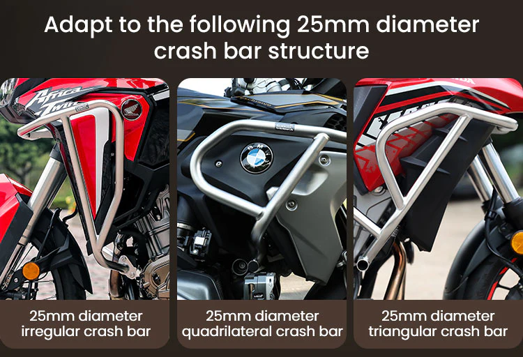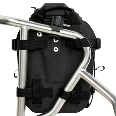 The adjustable strap fixing buckles and universal mount design accommodate 25mm crash bar diameters, ensuring compatibility with a wide range of motorcycles. The intuitive installation process, complemented by lightweight yet sturdy materials, makes these bags an indispensable addition for riders seeking convenience and style. Strap one or more of the motorcycle frame bag directly to your bike and use it as a front bag, dirt bike bag, tail bag, crash bar bag or sissy bar bag for your daily adventures.
