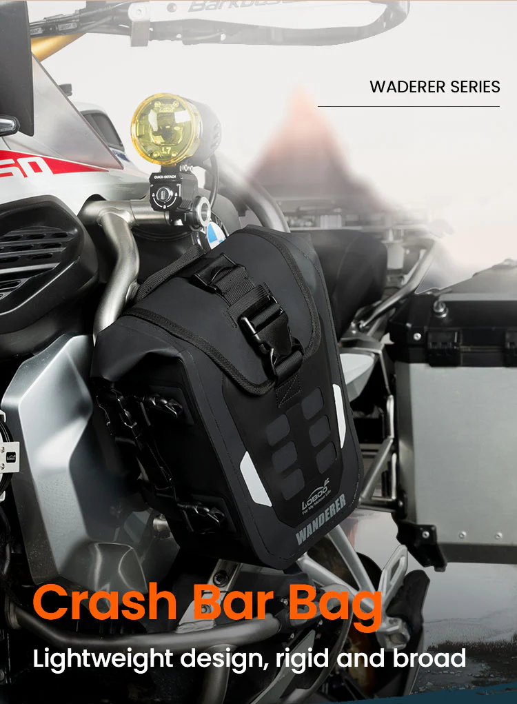 The Wanderer Crash Bar Bags seamlessly blend functionality, durability, and style. From offering unmatched protection during unexpected incidents to ensuring easy installation and waterproof reliability, these bags are essential for motorcyclists who demand superior performance.
