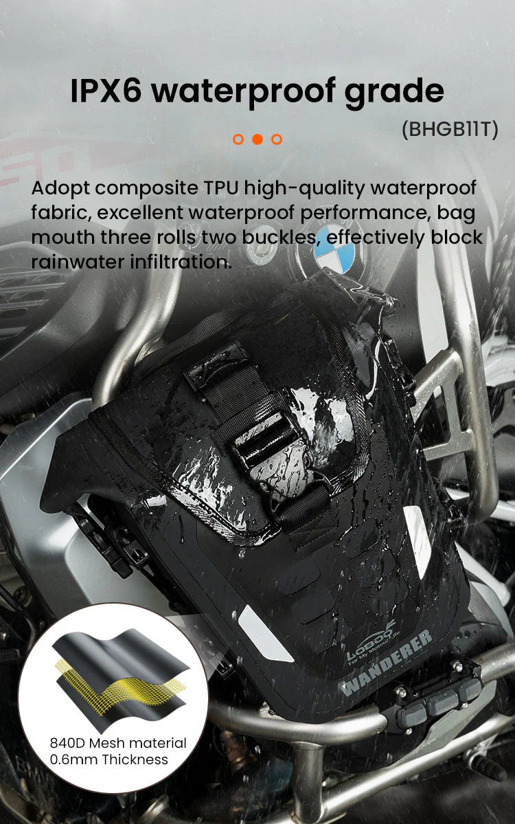 Constructed from premium TPU composite fabric, the Wanderer Crash Bar Bags feature IPX6 waterproofing, effectively preventing rainwater infiltration. This ensures your items stay dry and protected, even in heavy downpours or wet environments. - Enhanced Durability and Longevity